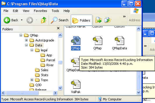 - Browse to the QuickMap folder using Explorer, and look for a file called QMap.LDB. If your version of Explorer hides file extensions, then QMap.LDB will be described as a Microsoft Access Record-Locking Information file. If you find a file called QMap.LDB, this normally means that someone is running QuickMap on your network, and is probably why the upgrade did not work. If you are sure no-one is running QuickMap, then you can delete the file manually.If the file cannot be deleted, you can reboot the PC and try again. If the file is on the server and you are browsing the file through a shared network drive, then you will need to reboot the server, not your local PC.After deleting the file, re-run the upgrade off Disk 2. If QMap.LDB did not exist in the first place, continue with step 4 below.