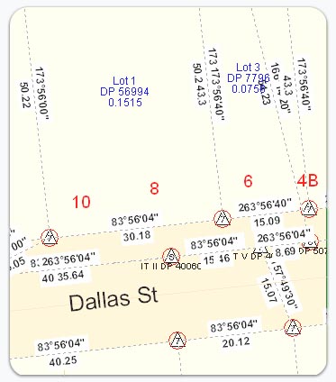 Perhaps the most important information associated with the mark is its Survey Accurate Digital Cadastre Status (SDC). Surveyview provides an SDC layer which will circle the mark in red if it has achieved SDC status. Where the survey data meets the accuracy standards required in the Survey Regulations, the marks are assigned SDC status by Land Information New Zealand (LINZ).