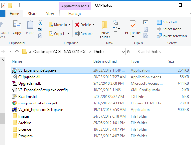 Quickmap Version 8 Imagery is typically installed by running V8_ExpansionSetup.exe.