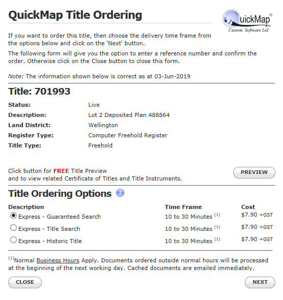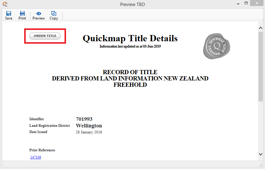The ‘Order Title’ button on the Title preview will then link you to the Title Ordering page.