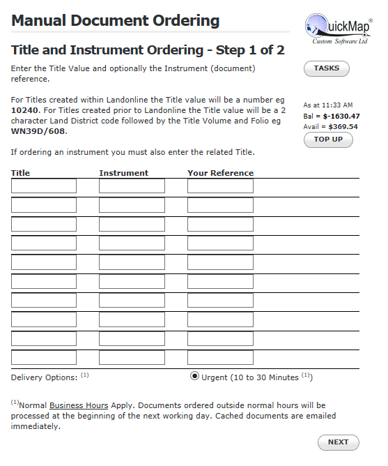 Complete the order by entering your Login and password and a note for your own reference if you wish. The document and a receipt will then be emailed to the email address provided by the registered user. Documents are normally delivered within 30 minutes and to date we have managed to deliver 50% of documents in under 10 minutes.