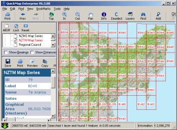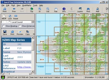 This layer displays the index layout of the printed NZMS260 map sheets which cover New Zealand.Sheet lines are defined by the New Zealand Map Grid and standard 260 map sheets are 40km E-W and 30km N-S – in a couple of places where the land area is small, two or more grid areas are combined into a single map sheet.Each record includes the sheet grid code, the sheet name, lastest publish date (as at March 2007) and a hyperlink to additional information on the LINZ website.