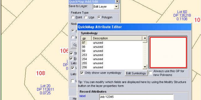 To add data to a custom layer in Quickmap, click on the Add button along the top tool bar, choose your feature type, Point, Line or Polygon. If you wish to latch onto the boundary points, tick on the Latch Continue reading How To Add Custom Data Layers To Quickmap